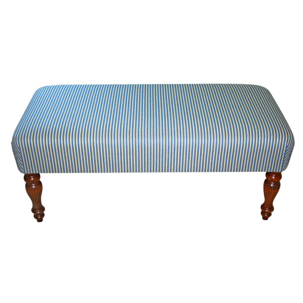 Ticking stripe is always a favourite and on reeded legs, this 20" x 40" x 15" high bench footstool is perfect to use as a coffee table with a tray.