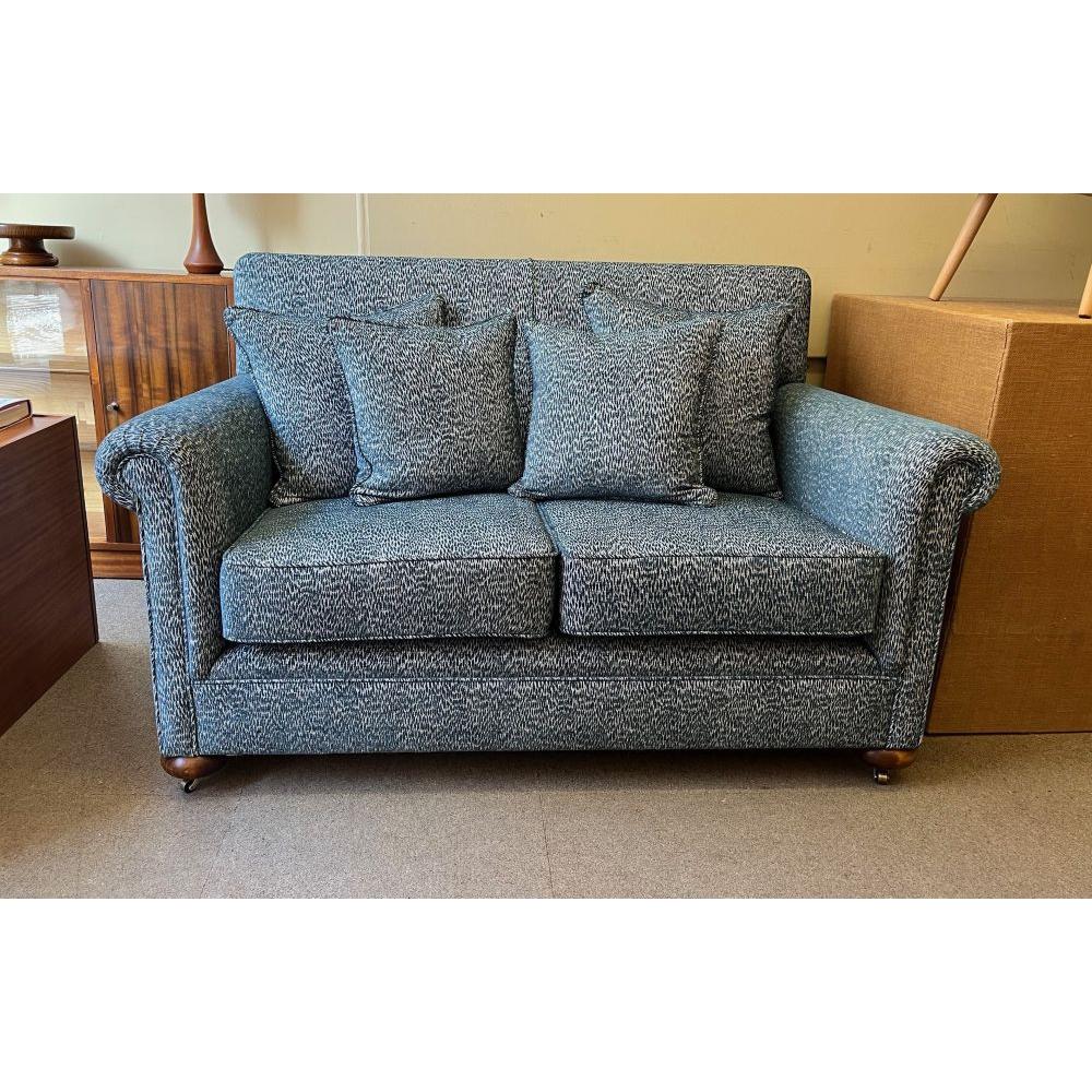 A beech frame, traditional coil sprung seat with foam seat cushions and feather back scatter cushions, this is a sofa for life. Based on an original 1920's sofa, this seats two and is perfect for a smaller room.