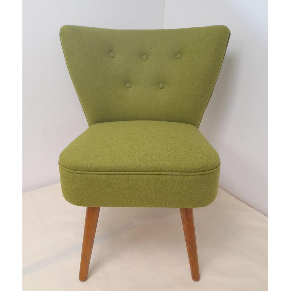 This lovely original 1960's cocktail chair has been restored and re-upholstered in lime green wool from Abraham Moon.